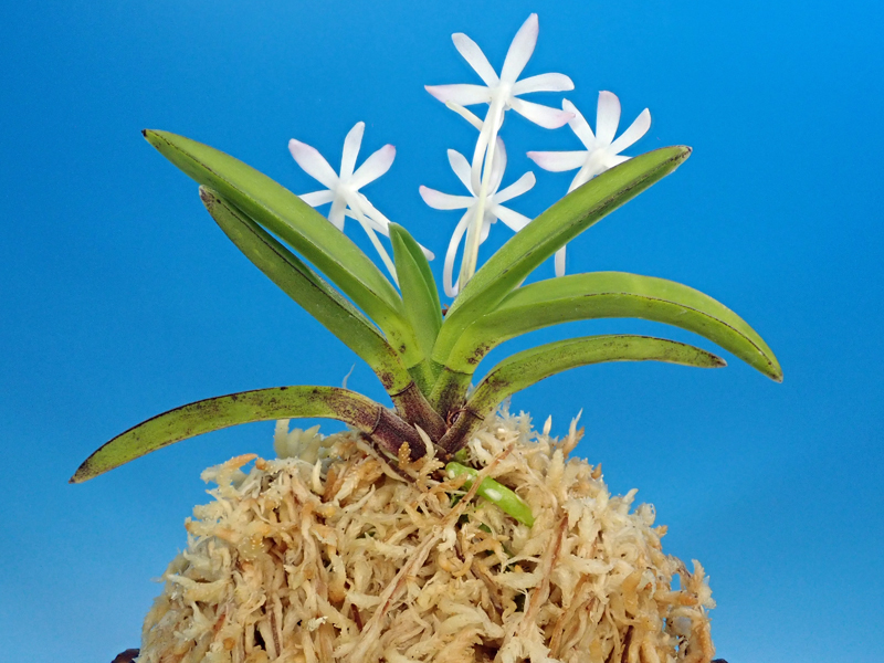 (前方に拝んでくる宝扇芸の中型風蘭)